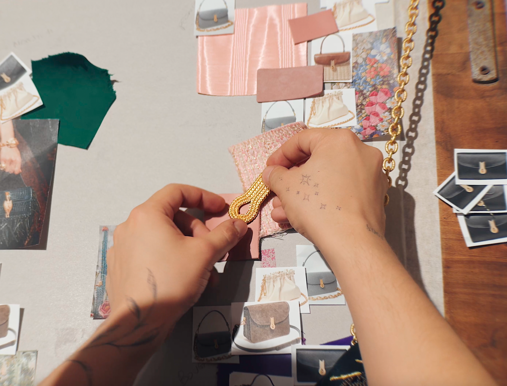 Three-dimensional embroideries, iconic motifs and hidden symbols bring the collection to life through imagery. Insects, seashells, flowers and constellations become wearable works of art. Each detail is a symbolic reference, a memory to keep close and carry with you.